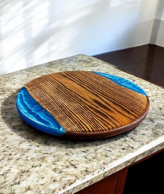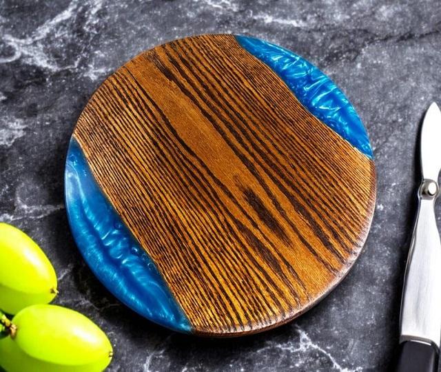 Tabla de Cortar de Madera Personalizada con Mango, Bandeja de Servir de Acacia para el Hogar, Plato Rectangular Sostenible de Resina Epoxi para Cortar Pan