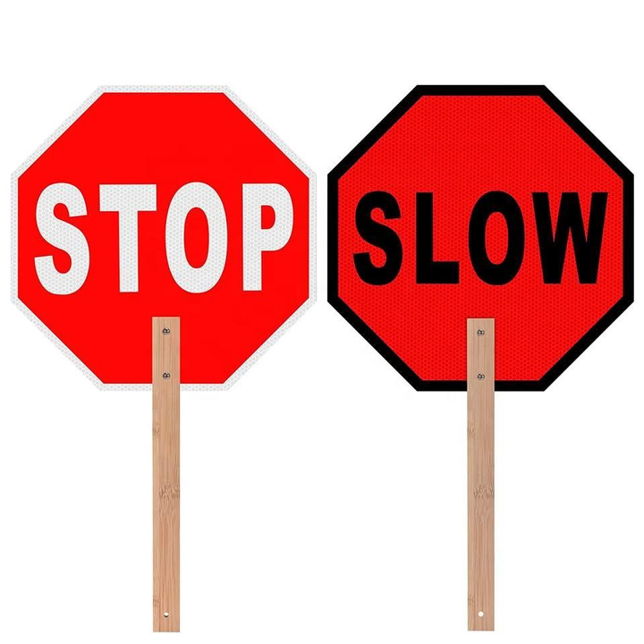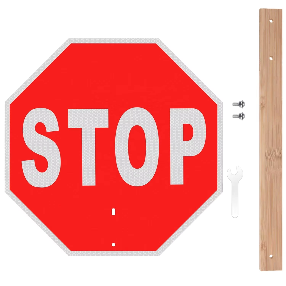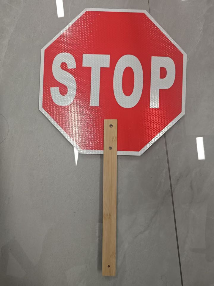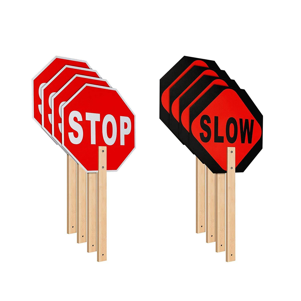 Señal de Advertencia de Tráfico Manual con Mango de Madera Personalizada, Reflectante, de Parada y Reducción de Velocidad