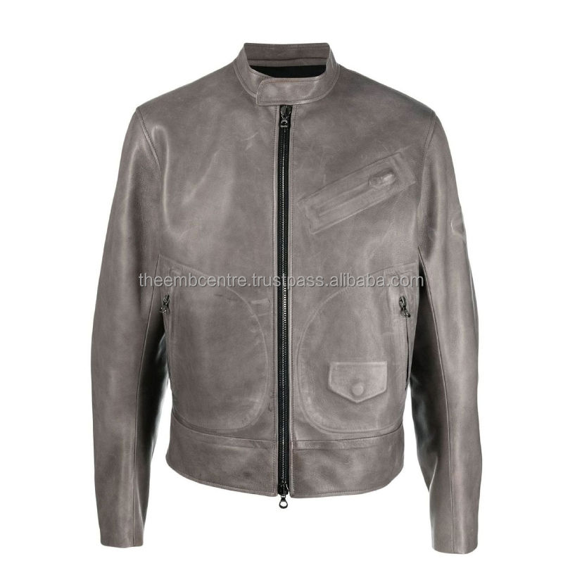 Chaqueta de piel auténtica personalizada con cremallera para hombre, chaqueta de piel auténtica de buena calidad a precios al por mayor, chaqueta de piel de color personalizada para hombre