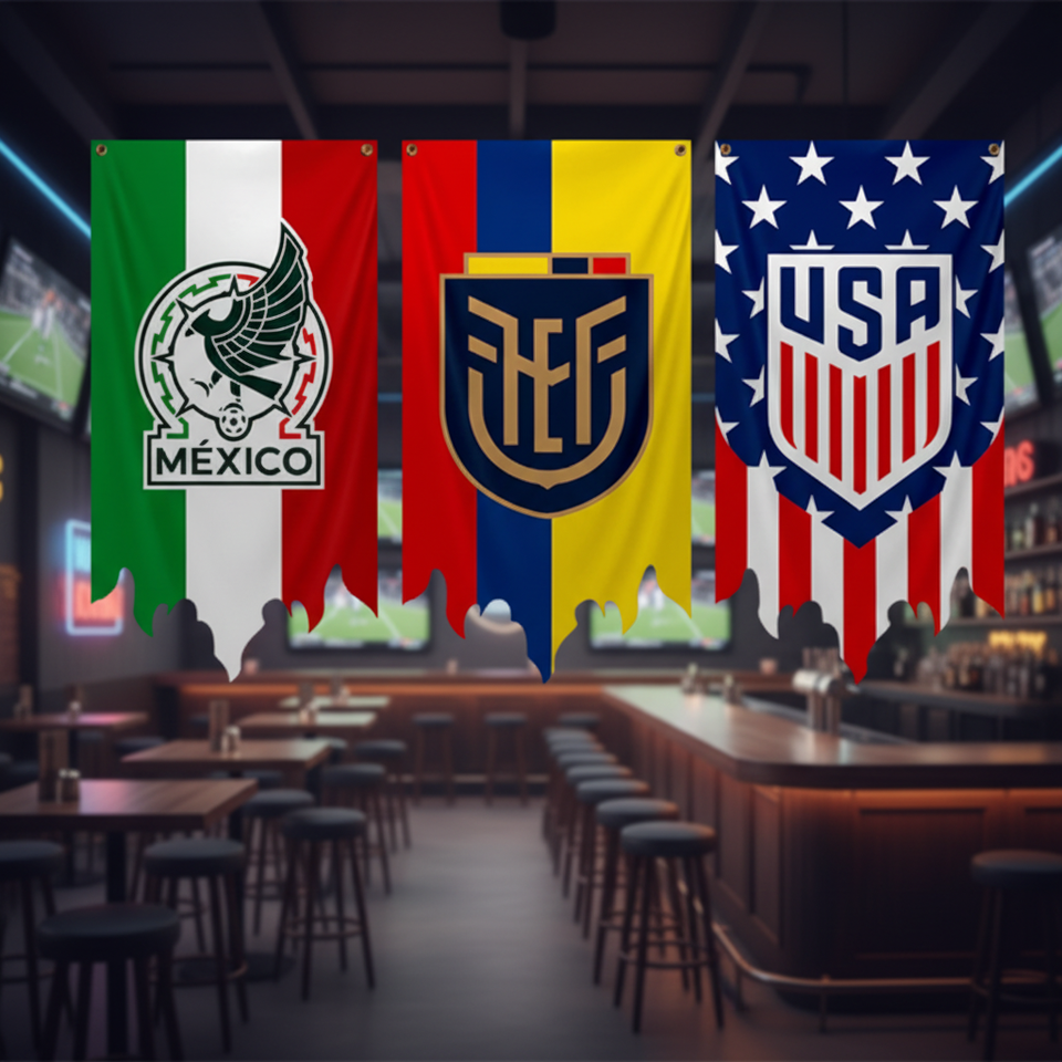 Pancarta Personalizada para Fiestas de Equipo, Decoración Interior para Bares y Clubes, Tela de Poliéster Resistente, Precio de Fábrica, Seguridad en Interiores