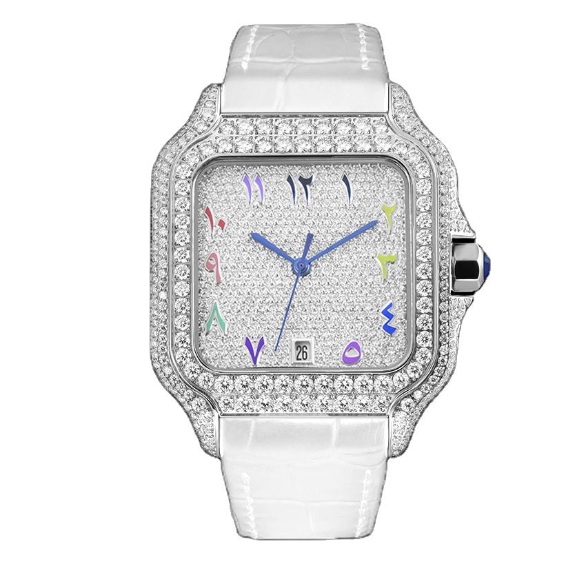 Reloj de hombre personalizado de alta calidad con cristal de hielo VVS y zafiro, caja cuadrada mecánica y diseño de superficie semi-ice de lujo.