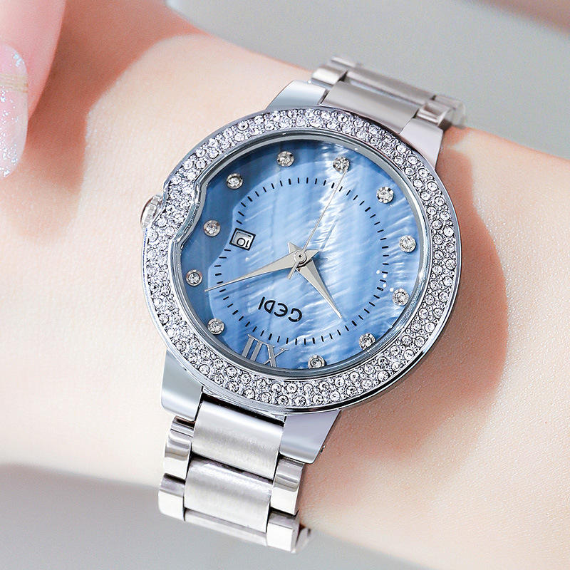 Reloj personalizado con correa de acero y esfera grande para mujer, versión coreana, reloj de cuarzo resistente al agua con tachuelas de diamantes a la moda