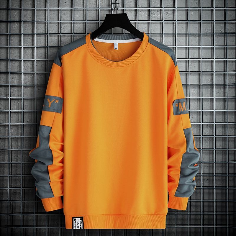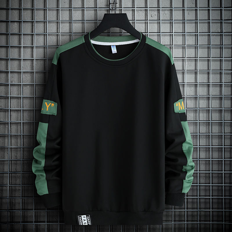 Suéter personalizado con logo para hombre, cuello redondo, estilo Hong Kong, con costuras en contraste, corte ajustado, moderno, de manga larga para primavera.