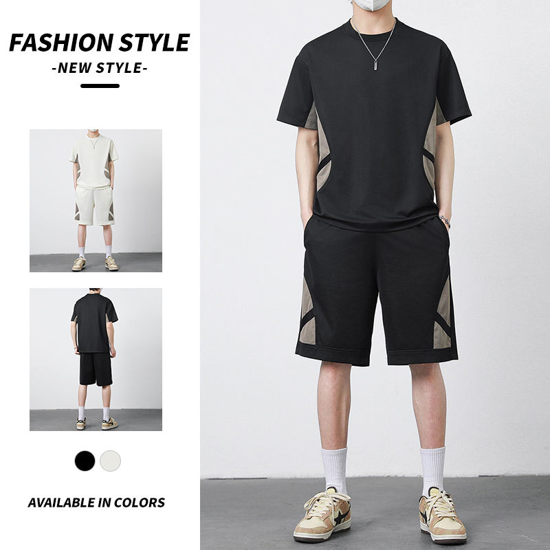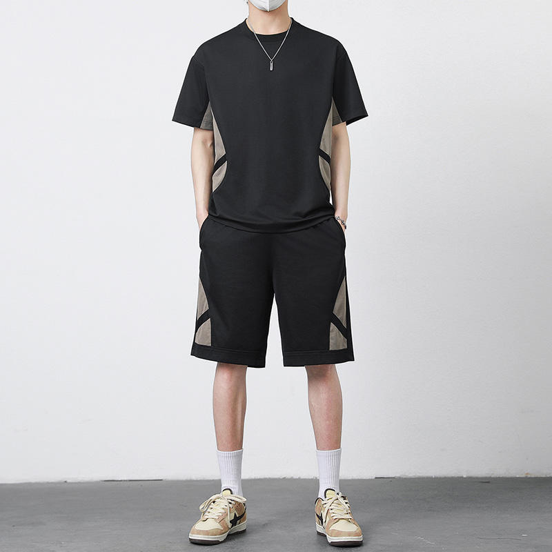 Conjunto deportivo clásico de dos piezas para hombre, con logotipo personalizado, suave, informal, de verano, pantalones elásticos, delgados, transpirables y a la moda.