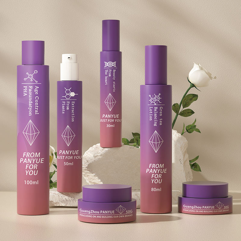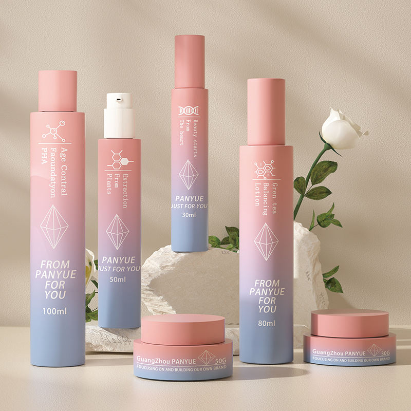 Envase de Tónico para el Cuidado de la Piel, Redondo, Moderno, Personalizable con Logotipo, Cilindro de Vidrio de Lujo para Cosméticos, Juego de Botellas con Bomba de 80ml y 100ml