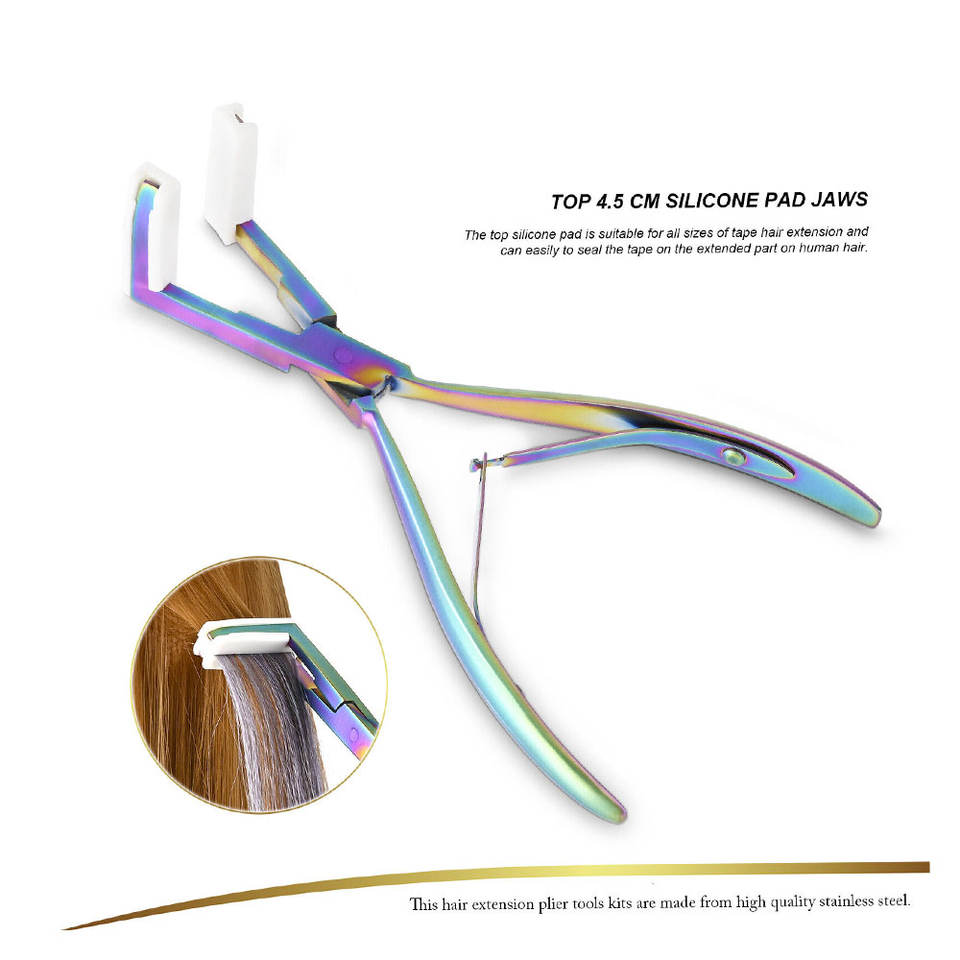 Alicates para extensiones de pelo de acero inoxidable con forma de logotipo personalizado, alicates para extensiones de cinta multifunción a la venta