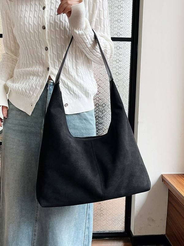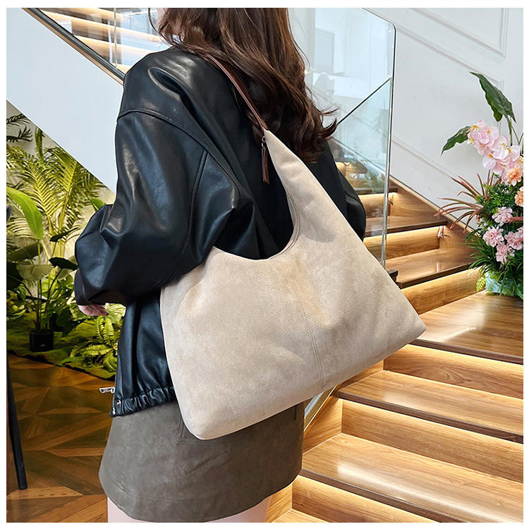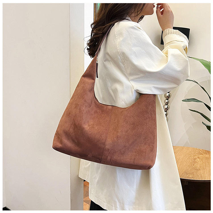 Bolso de Hombro de Cuero Suave con Logotipo Personalizado, Elegante Bolso de Mano de Gamuza, Bolso Tote Holgado, Bolsos Hobo de Cuero de Gamuza Vintage OEM para Mujer