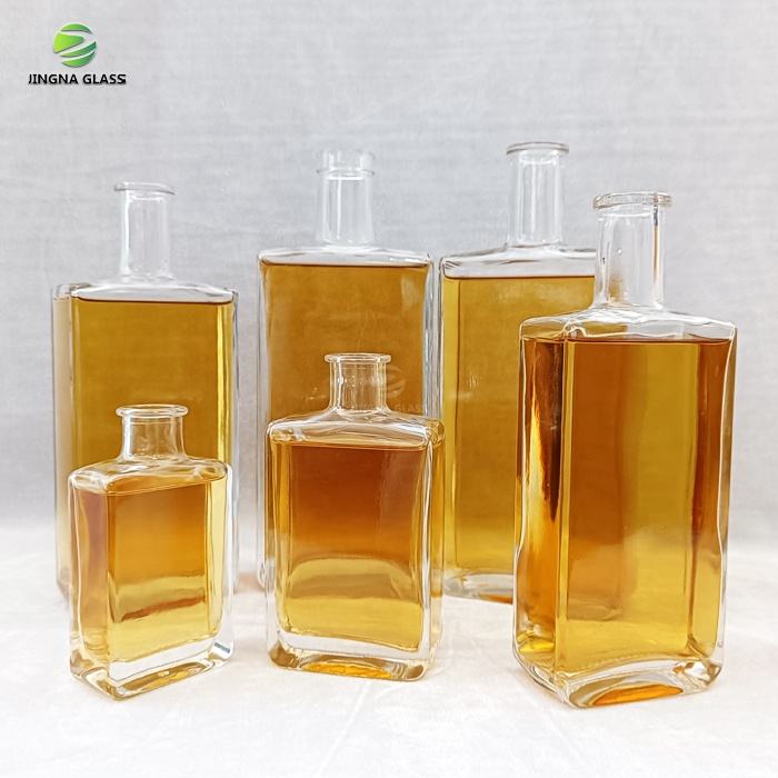 Logotipo personalizado Botellas de whisky de vidrio de forma cuadrada Botella de Long Island 200ml 700ml en stock
