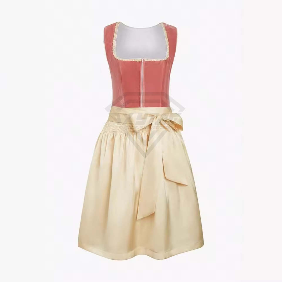 Diseño de logotipo personalizado Velvet Dirndl Dress Oktoberfest Traje bávaro Elegante vestido alemán Trachten con falda y delantal
