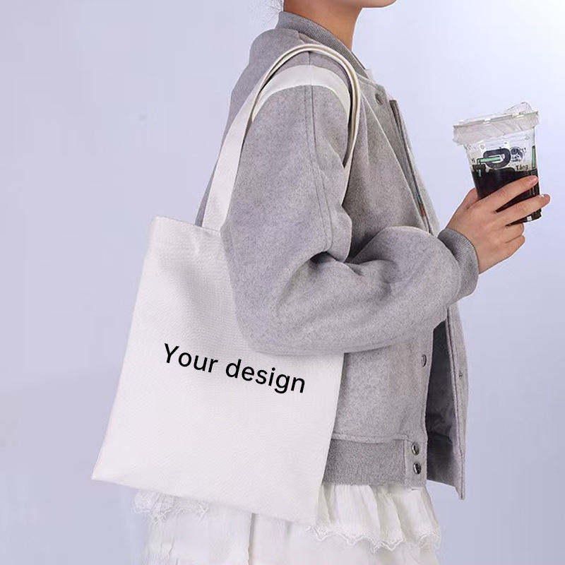 Bolsa de compras reutilizable de lona de poliéster y algodón con logotipo personalizado