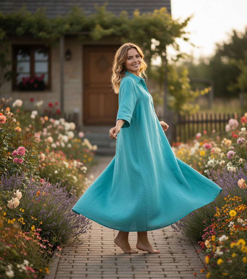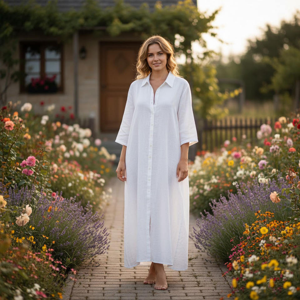 Vestido camisero de lino de talla grande con botones y ajuste holgado personalizado
