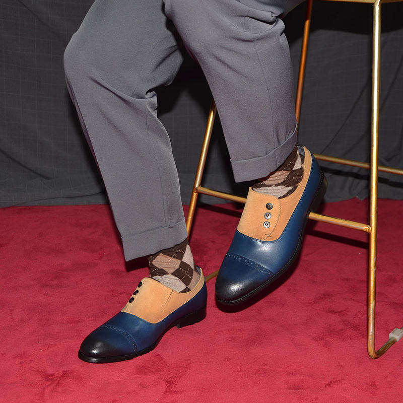 Zapatos de cuero personalizados para hombre, hechos a mano con cuero vacuno genuino, zapatos de vestir y Oxford azules casuales.