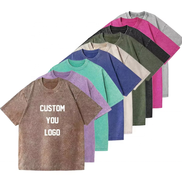 Camiseta retro americana holgada de manga corta, 100% algodón, con logo impreso personalizado, estilo lavado y desgastado, estilo hip-hop.