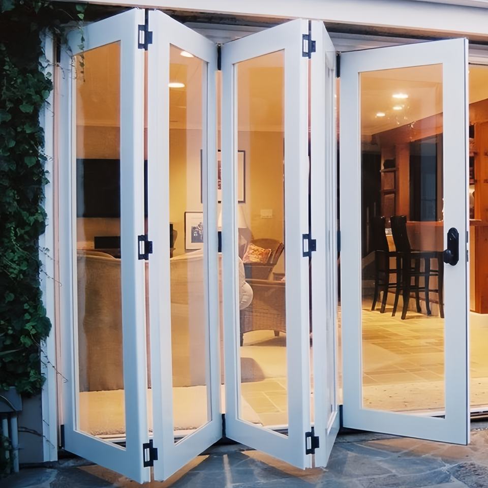Puerta plegable de vidrio doble resistente personalizada, marco de aluminio Exterior a prueba de huracanes de acordeón plegable para patio plegable
