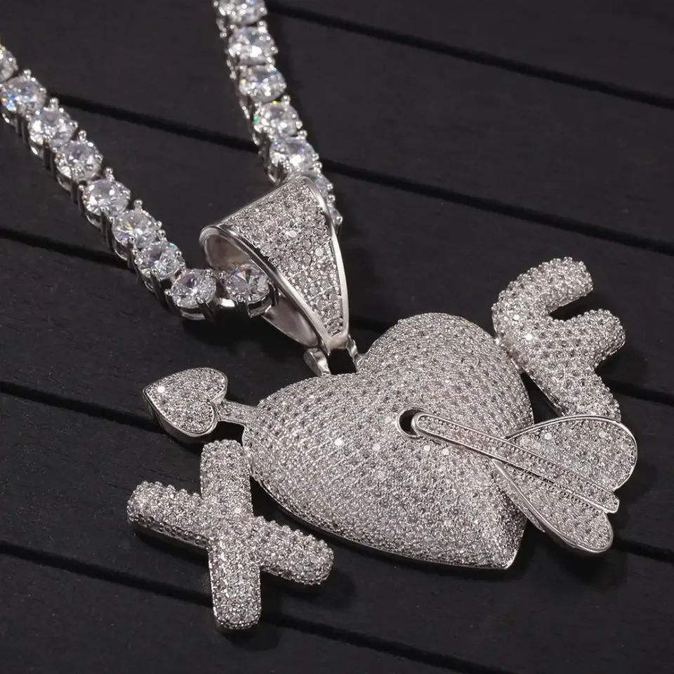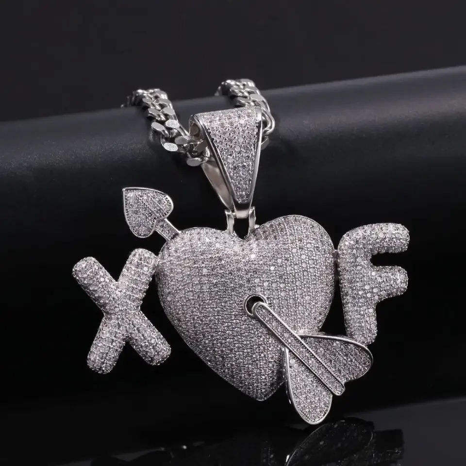 Customizedc forma de corazón Hip Hop Iced Out VVS diamante colgante collar Hip Hop diamante colgante joyería fina para mujeres