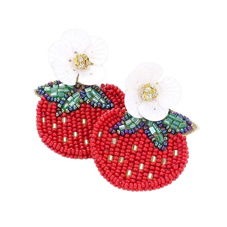 Personalizar Flor de fresa artesanal con cuentas bordado pendientes de lujo última declaración única y elección por Hiba Enterprises