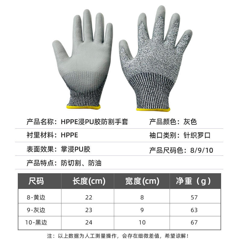Guantes resistentes a cortes, nivel 5, protección de palma recubierta de PU para corte de vidrio, cocina, carpintería, soldadura, industria, material HPPE