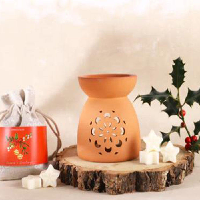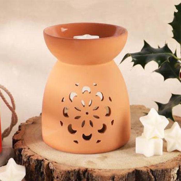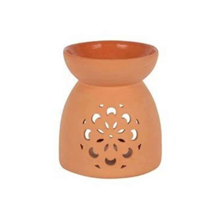 Quemador de Aceites Esenciales de Terracota con Diseño Calado de Flor