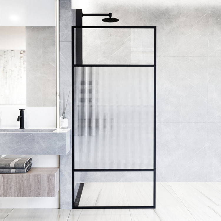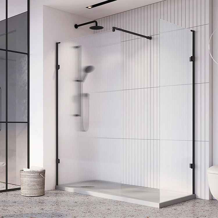 Mampara de Ducha de Vidrio Templado para Baño, con Textura Grabada, Diseño Acanalado, Corte a Medida