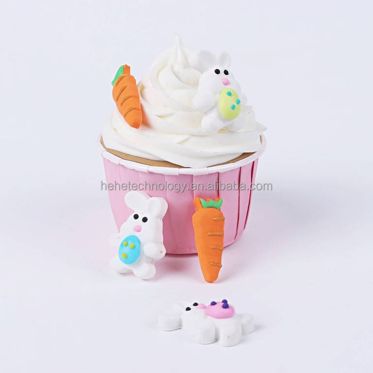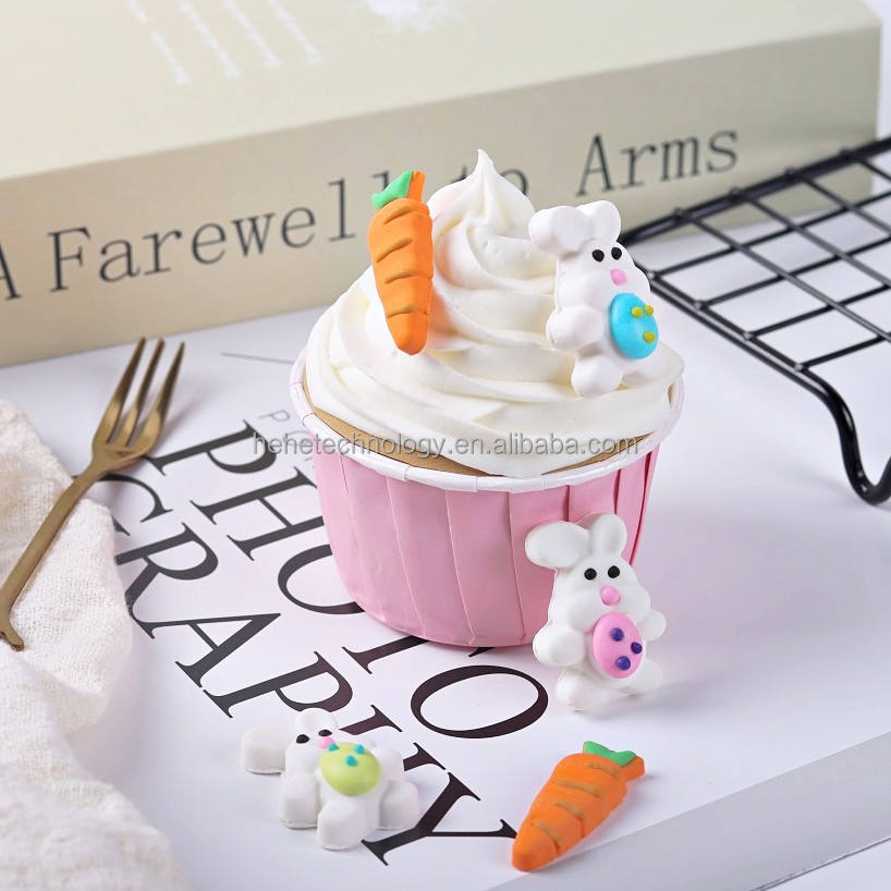 Conejo de Pascua de 32mm, zanahoria comestible, Fondant, decoración de panadería, ingredientes reales, decoraciones para galletas, pasteles