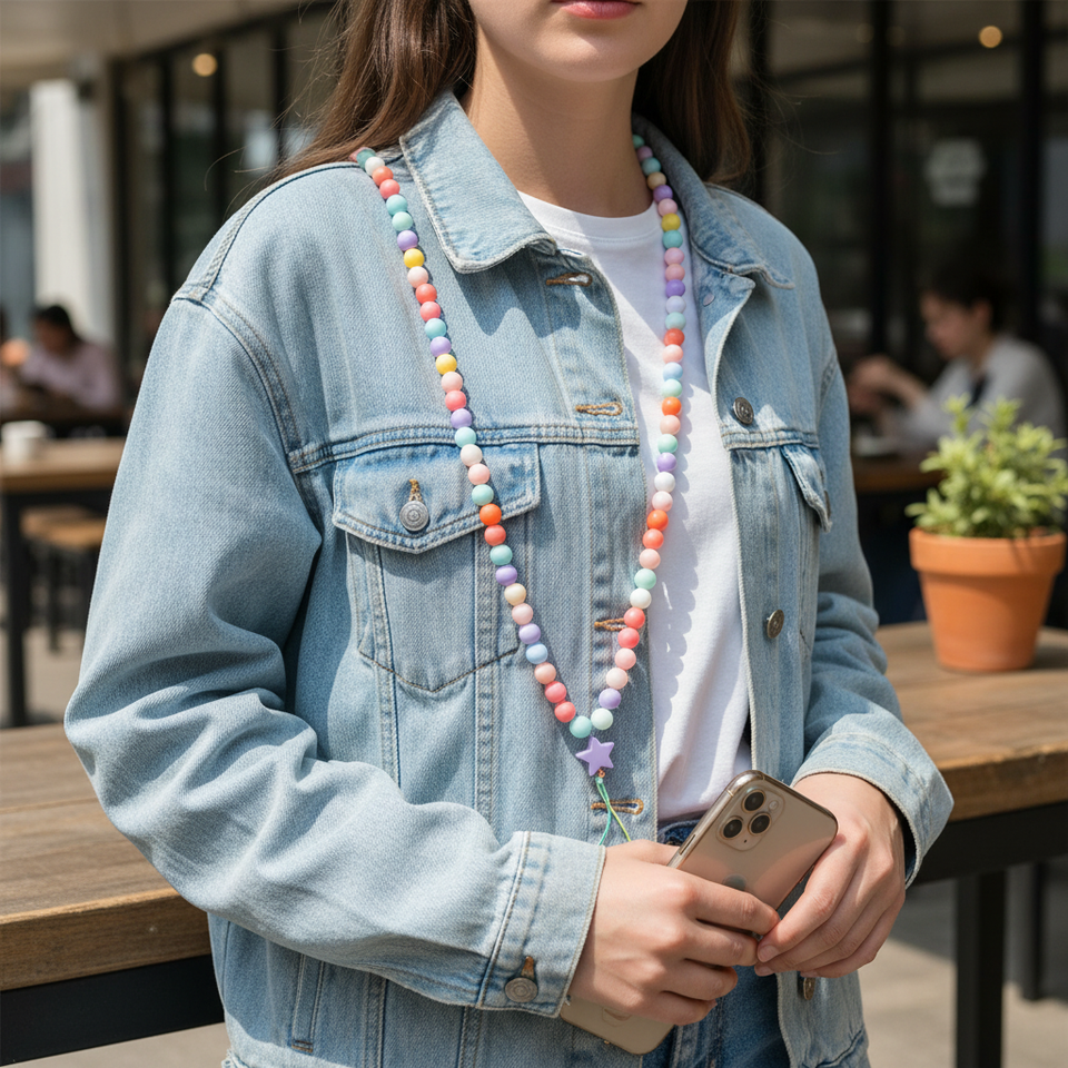 Lindo 4 # Correa larga para teléfono móvil Lindo Crossbody Acrílico y diseño de cuentas para teléfono celular