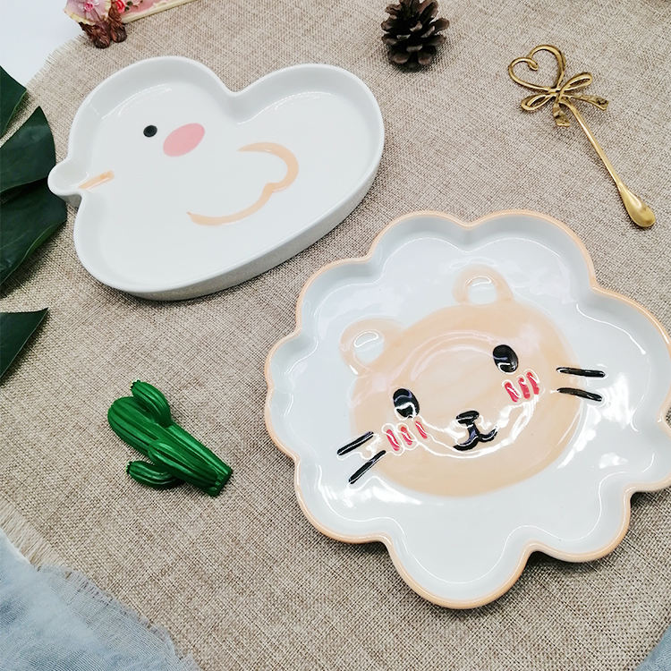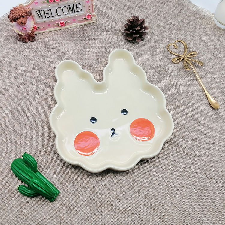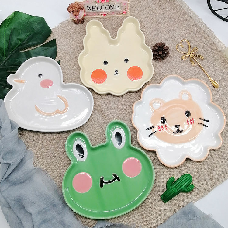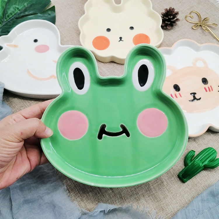 Plato de Cerámica con Diseño de Animales, Plato para Desayuno, Plato para Carne, Plato de Postre con Dibujos Animados de Conejo y Rana, Plato para Fruta y Bocadillos, Vajilla con Diseño de Animales