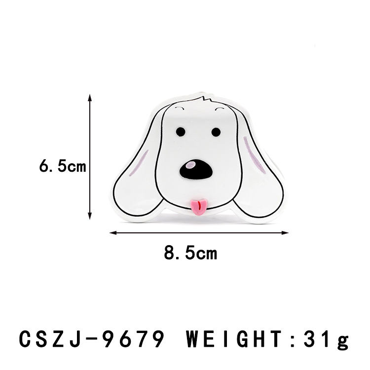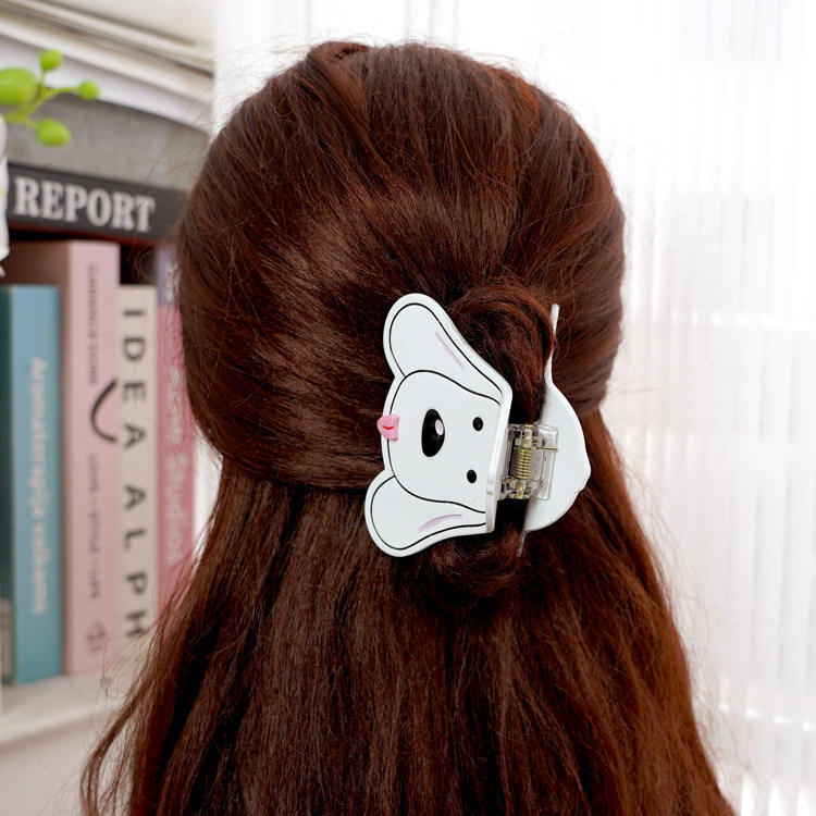 Pinzas de pelo de acetato grabadas cachorro blanco diseño 3D personalizado al por mayor