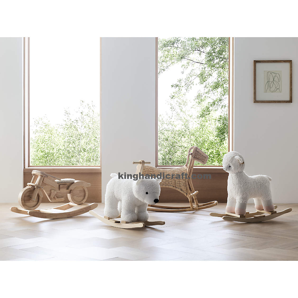 Mecedora de ratán animal para guardería de bebé, mecedora de mimbre hecha a mano en forma de caballo, elefante o ciervo para habitación de niños