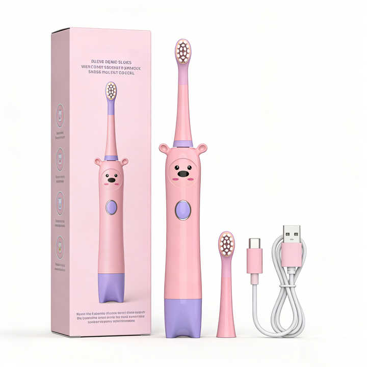 Cepillo de Dientes Eléctrico Recargable USB con Forma de Animal para Niños de 7 Años, Cable de Carga Portátil, Batería