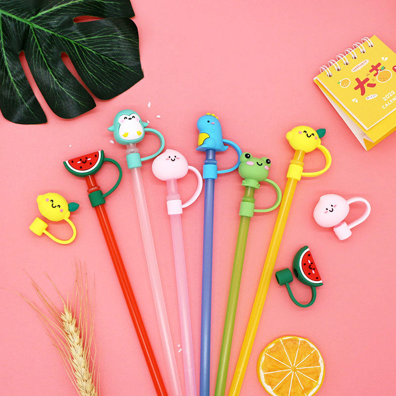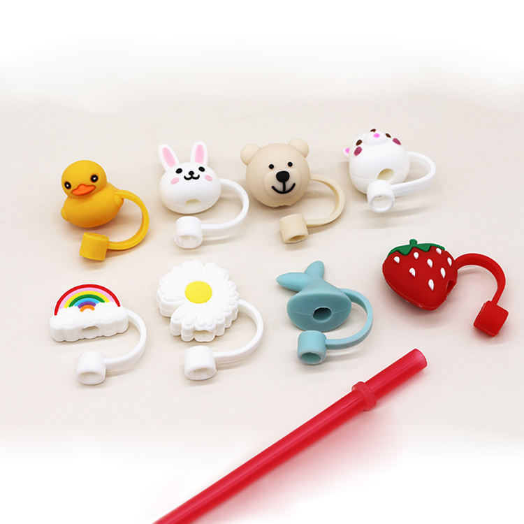 Cubiertas de Silicona para Pajitas con Diseños de Animales, Reutilizables, de PVC, para Pajitas de Silicona