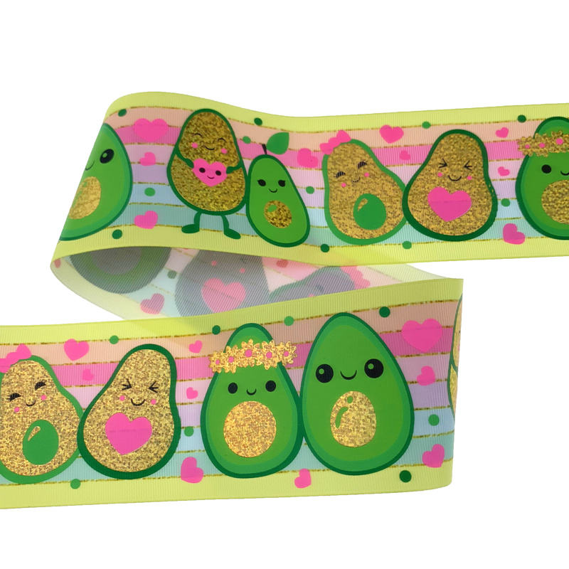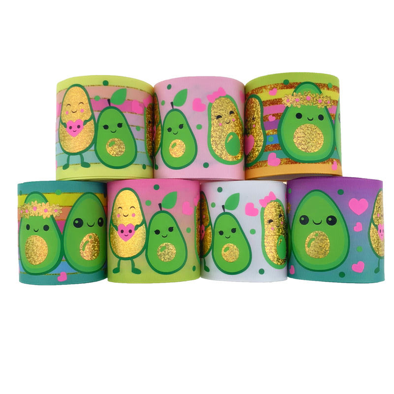 Cinta de Grosgrain con Estampado de Aguacate, Diseño de Personaje de Aguacate en Lámina Dorada para Manualidades, Envoltura de Regalos, Colores Pastel Surtidos