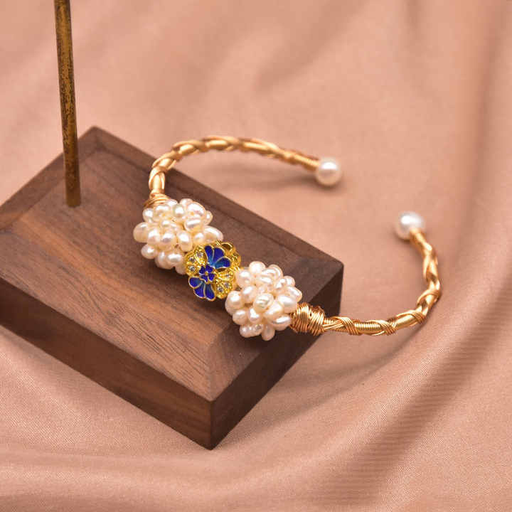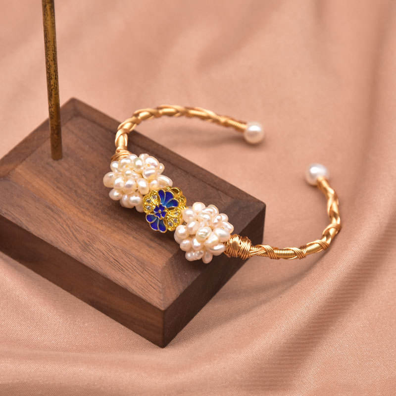Pulsera de Perlas con Dije de Abeja, Perlas Cultivadas de Agua Dulce, Chapada en Oro, Ajustable, Joyería de Moda para Niñas