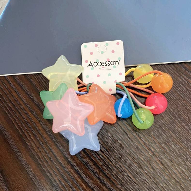 Lindas Bandas para el Cabello de Goma en Color Caramelo, Juego de 5 Piezas, Adorno para el Cabello con Estrellas y Flores para Niñas, para el Regreso a Clases