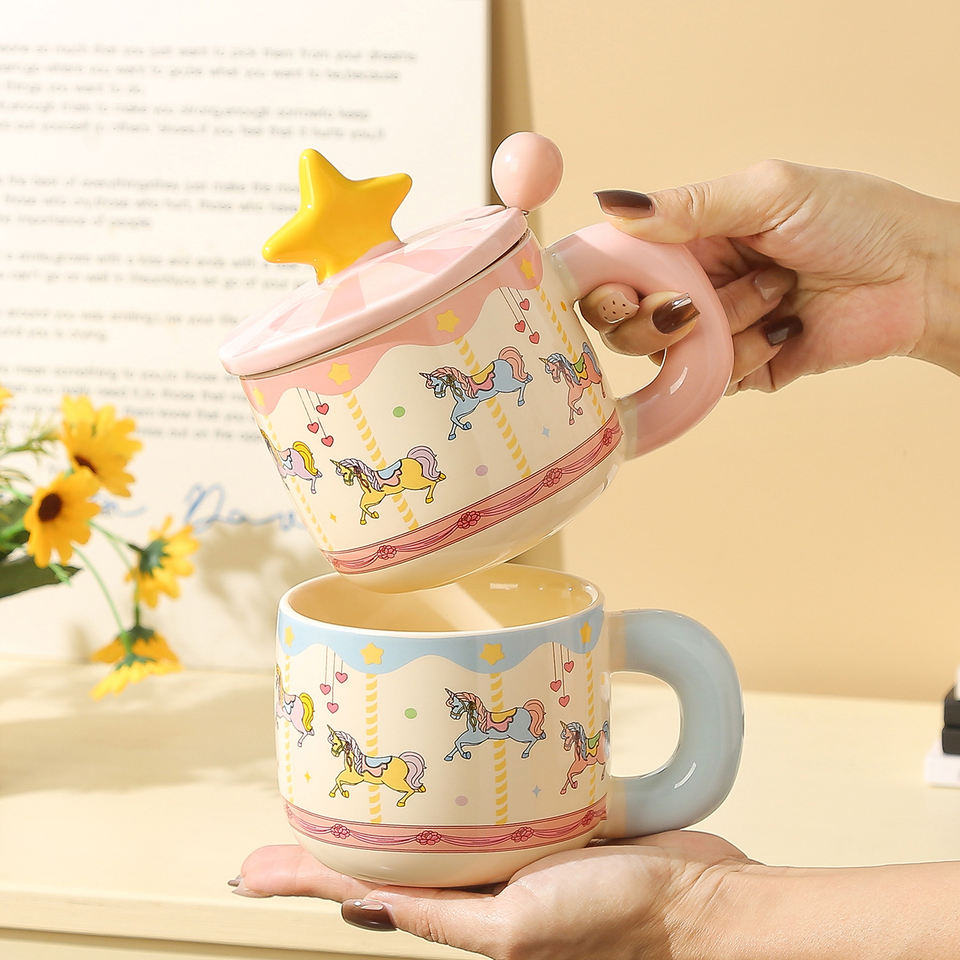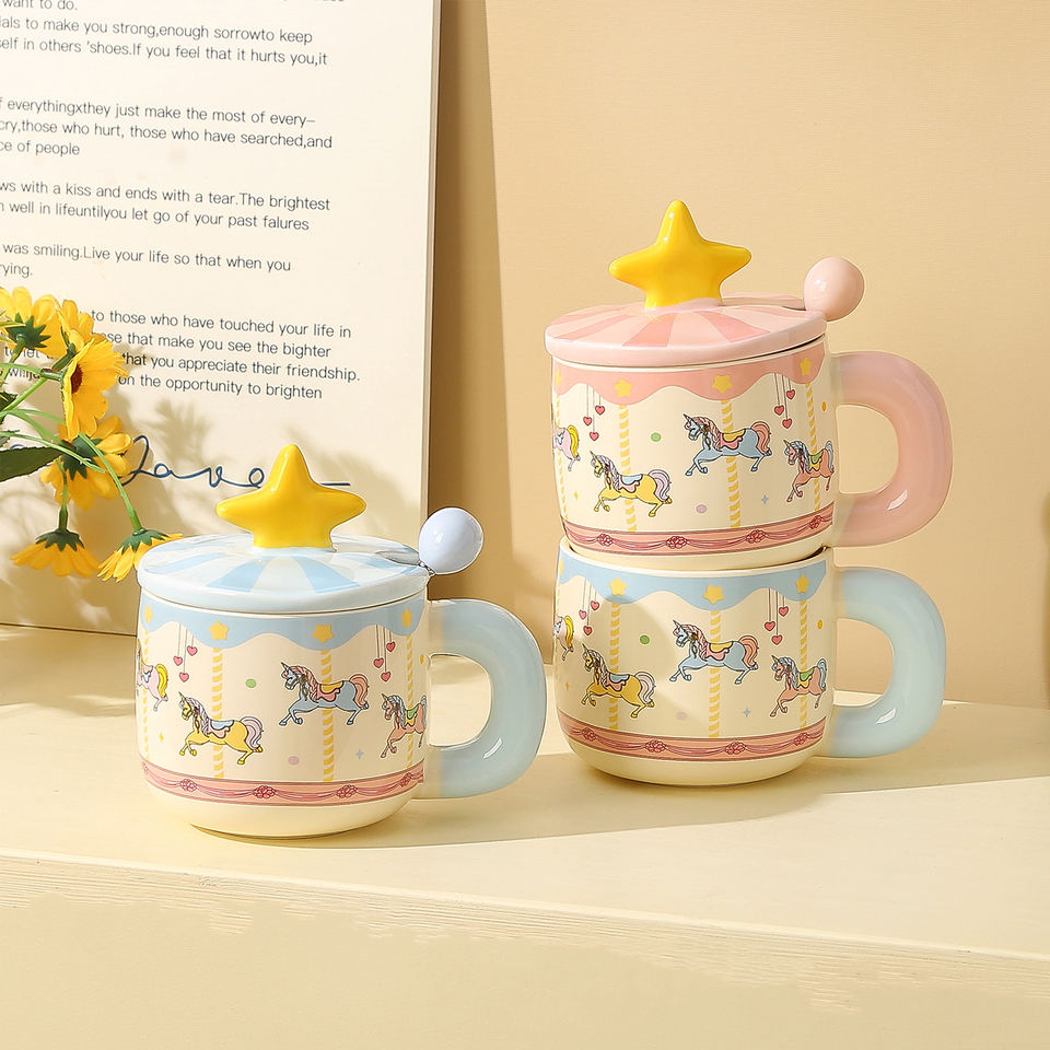 Product Name:Cute Carousel Ceramic Mug with Star Lid