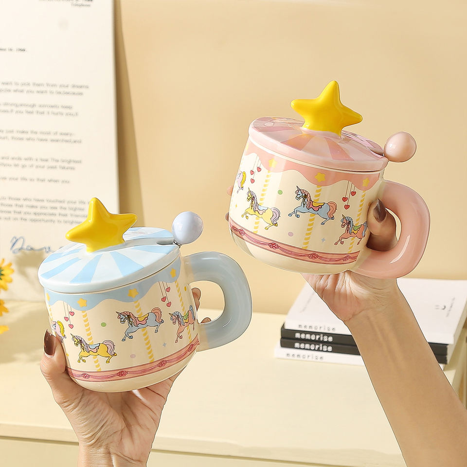 Cute Carousel Ceramic Mug with Star Lid