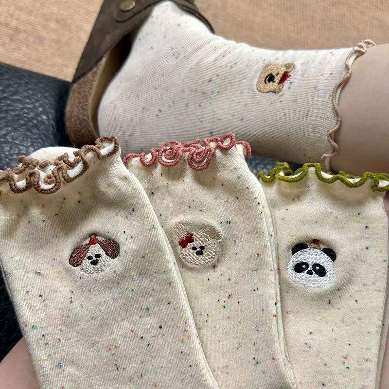 Cute Cartoon Ankle Socks Women Ruffled Edge Breathable Polyester Fiber Animal Patterns Student Korean Style Fashion Socks