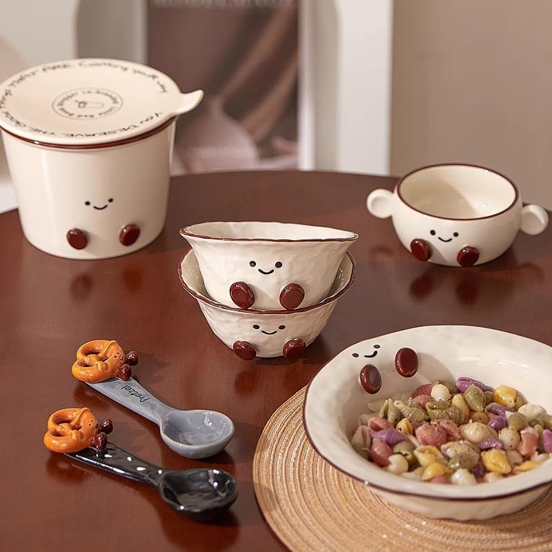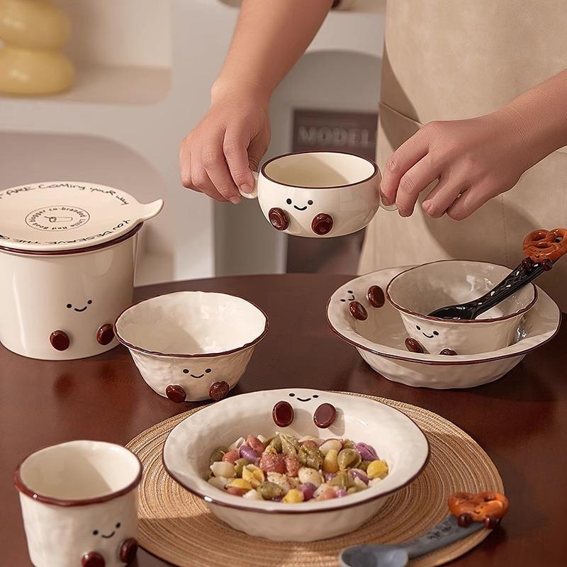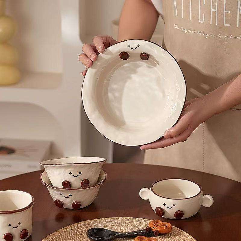 Juego de Vajilla de Cerámica con Diseño de Patita, Estilo Caricatura, con Color Subesmaltado, para Uso Doméstico y Regalos
