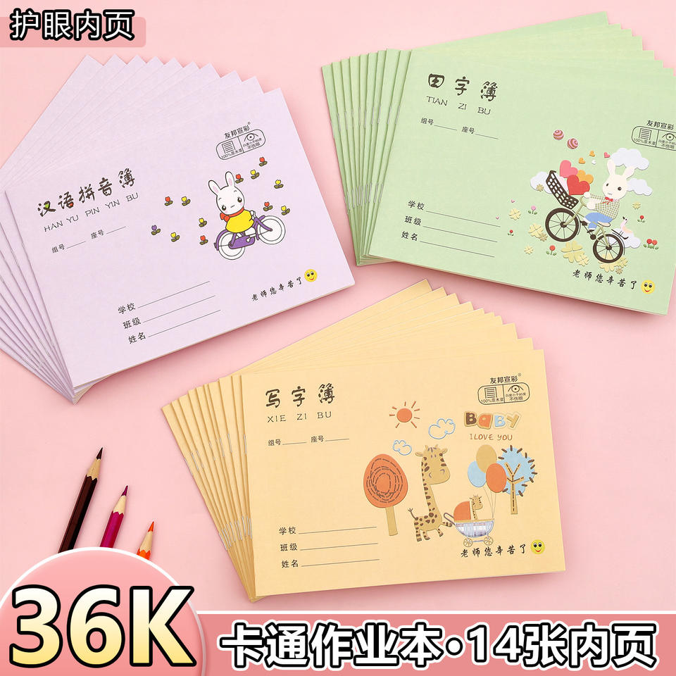 Cuadernos de Ejercicios con Dibujos Animados para Estudiantes de Primaria, 36K, Hojas Gruesas para Práctica de Escritura con Colores que Protegen la Vista