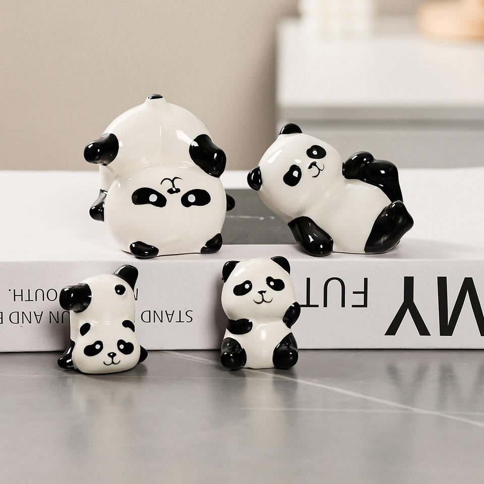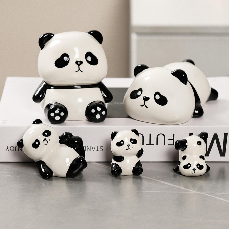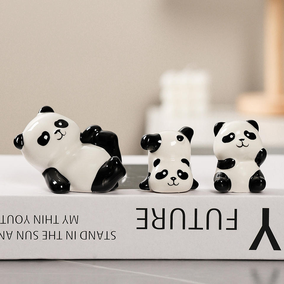 Juego de Adornos de Cerámica con Diseño de Panda de Dibujos Animados, Estilo Moderno y Minimalista para Sala de Estar o Escritorio