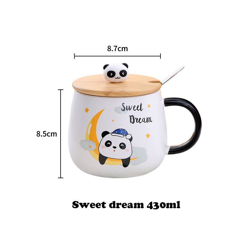 Nombre del producto:Taza de Cerámica con Diseño de Panda de Dibujos Animados, 400 ml, con Tapa y Cuchara
