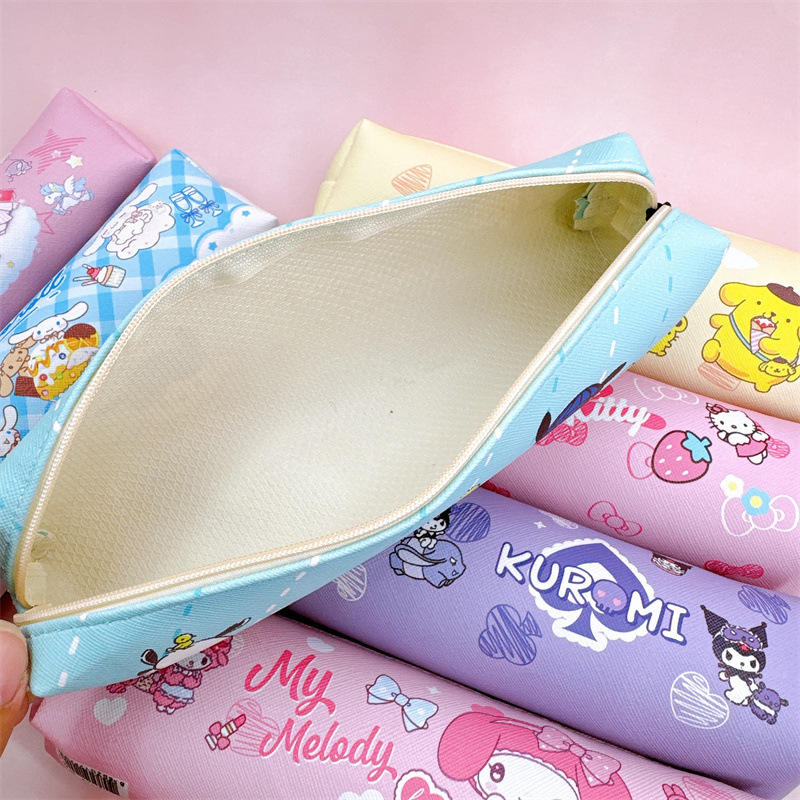 Estuche de Lápices con Diseño de Dibujos Animados, Gran Capacidad, PU de Una Sola Capa, Estuche Rectangular para Estudiantes con Diseños de Kuromi y Cinnamoroll