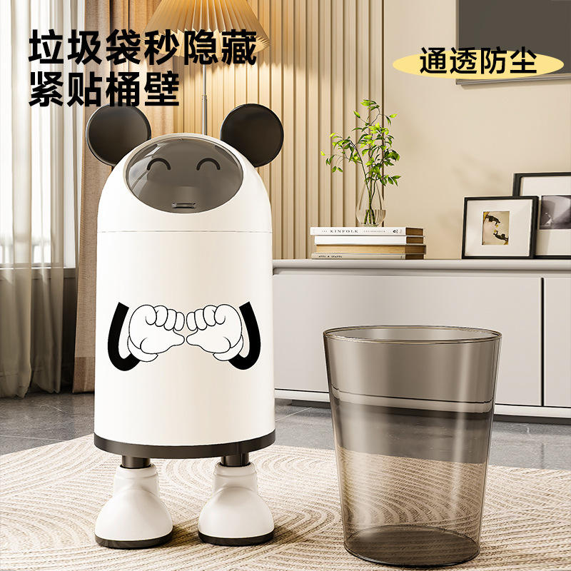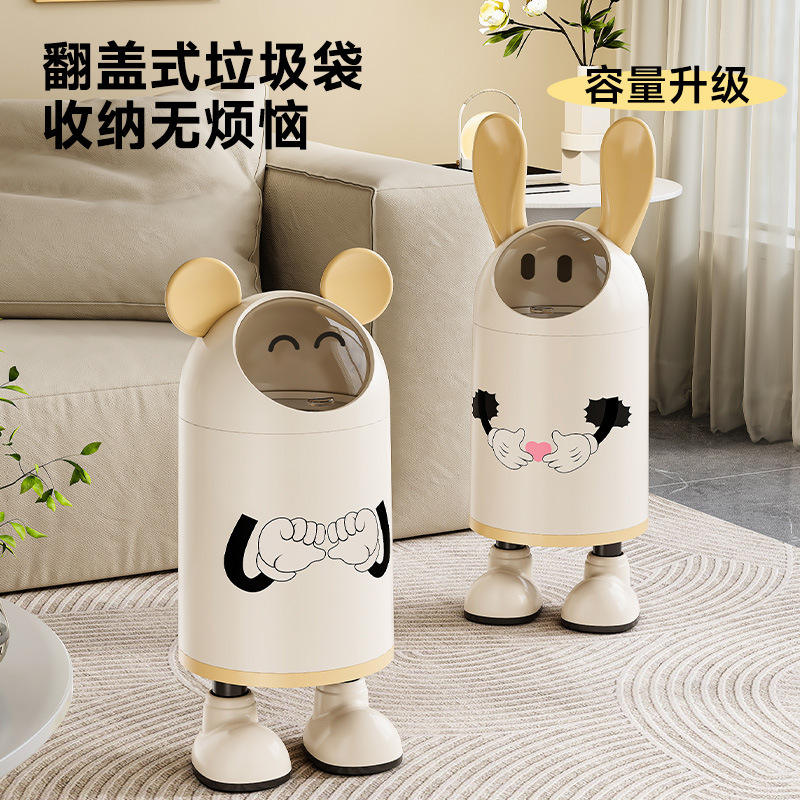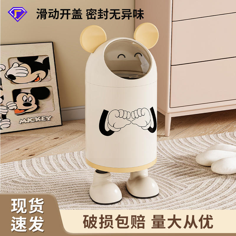 Bote de basura con diseño de dibujos animados, bonito y cilíndrico, con tapa, para interiores, para baño y cocina