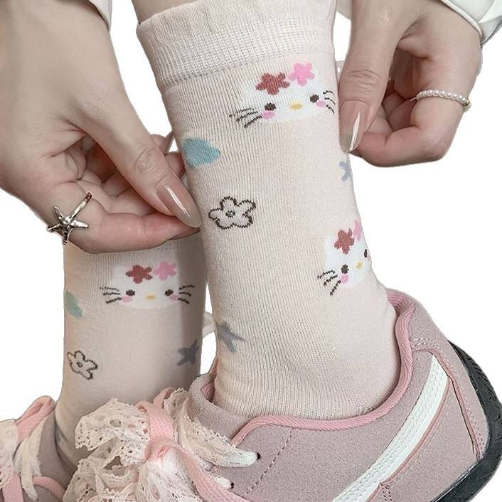 Calcetines de media pantorrilla transpirables con dibujos de gatos, para mujer, para todas las estaciones