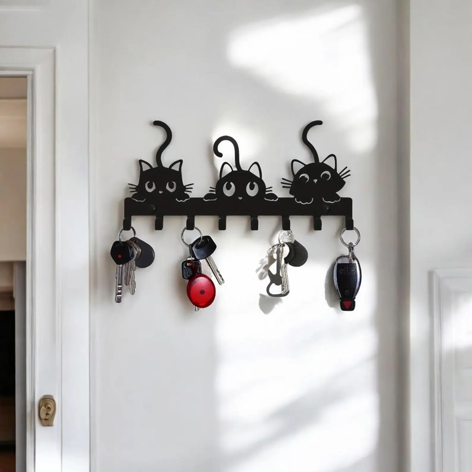 Porta Llaves de Pared de Metal con Diseño de Gato Adorable, Ganchos Organizadores de Llaves de Acero Cortado con Láser para Decoración de Entrada del Hogar