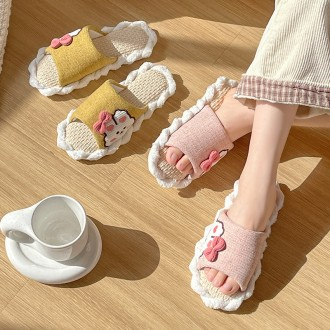 Zapatillas de Casa de Interior de lino con personajes bonitos para mujer, zapatillas de cáñamo de algodón de fondo suave antideslizantes para hombres, elección de parejas