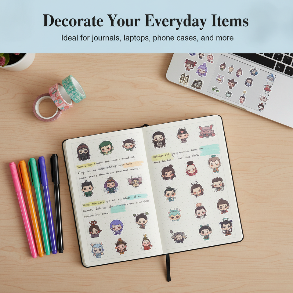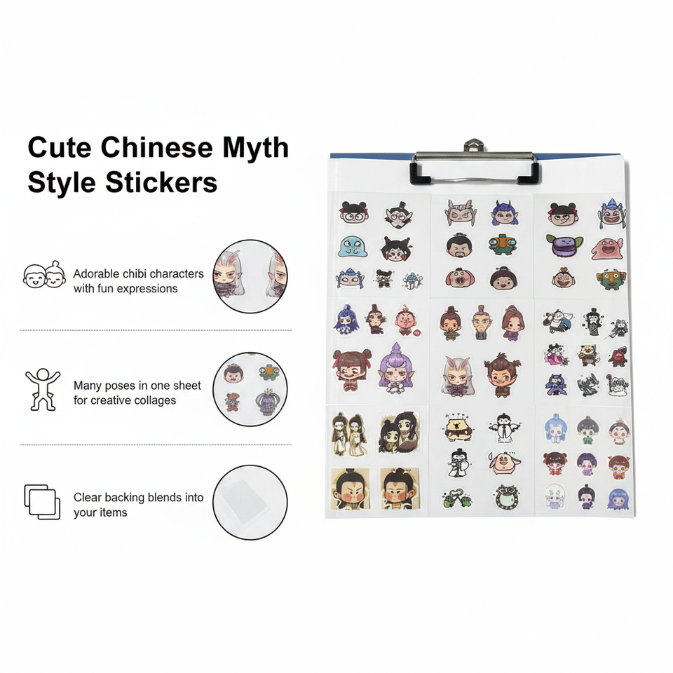 Pegatinas transparentes con personajes chibis de mitología china, pegatinas decorativas impermeables para álbumes de recortes