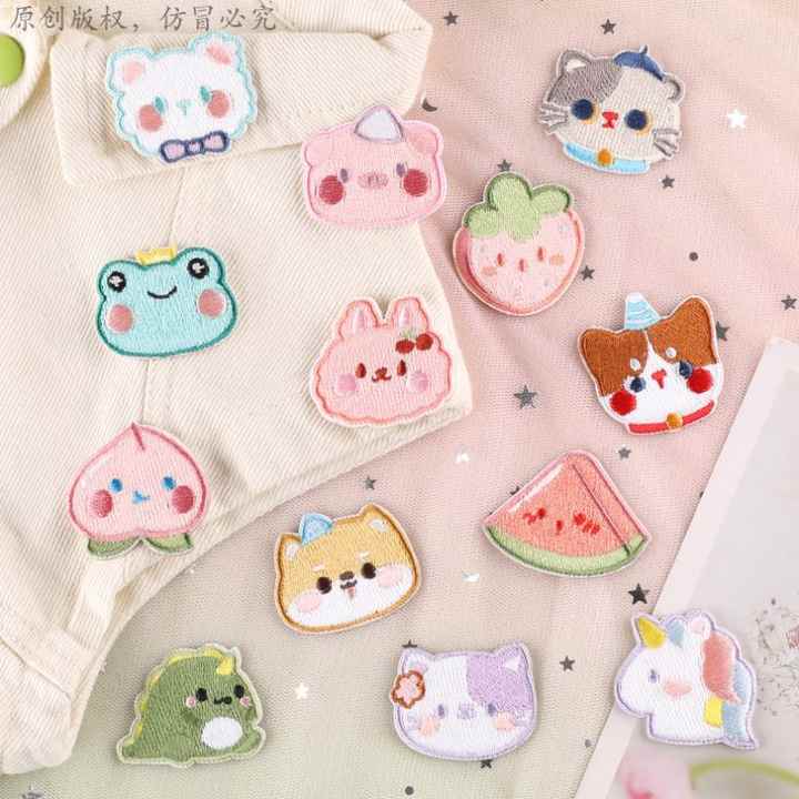 Cute Collection Self Sticker Embroidery Animal Bunny Frog Duck Bear Cat Pig Sheep Panda Cloud Patches for Decoration