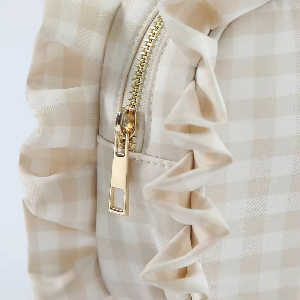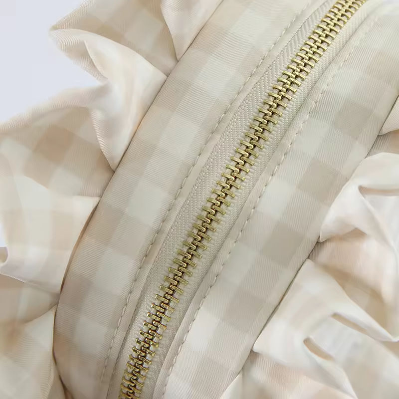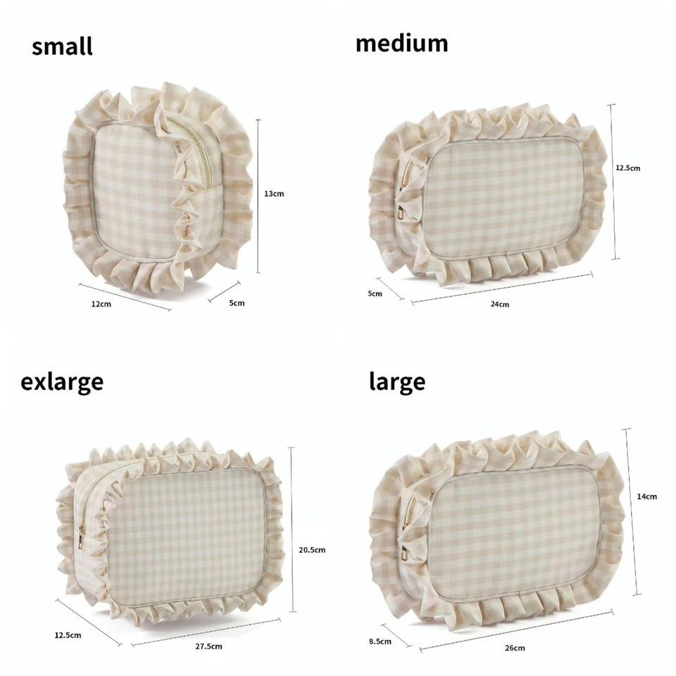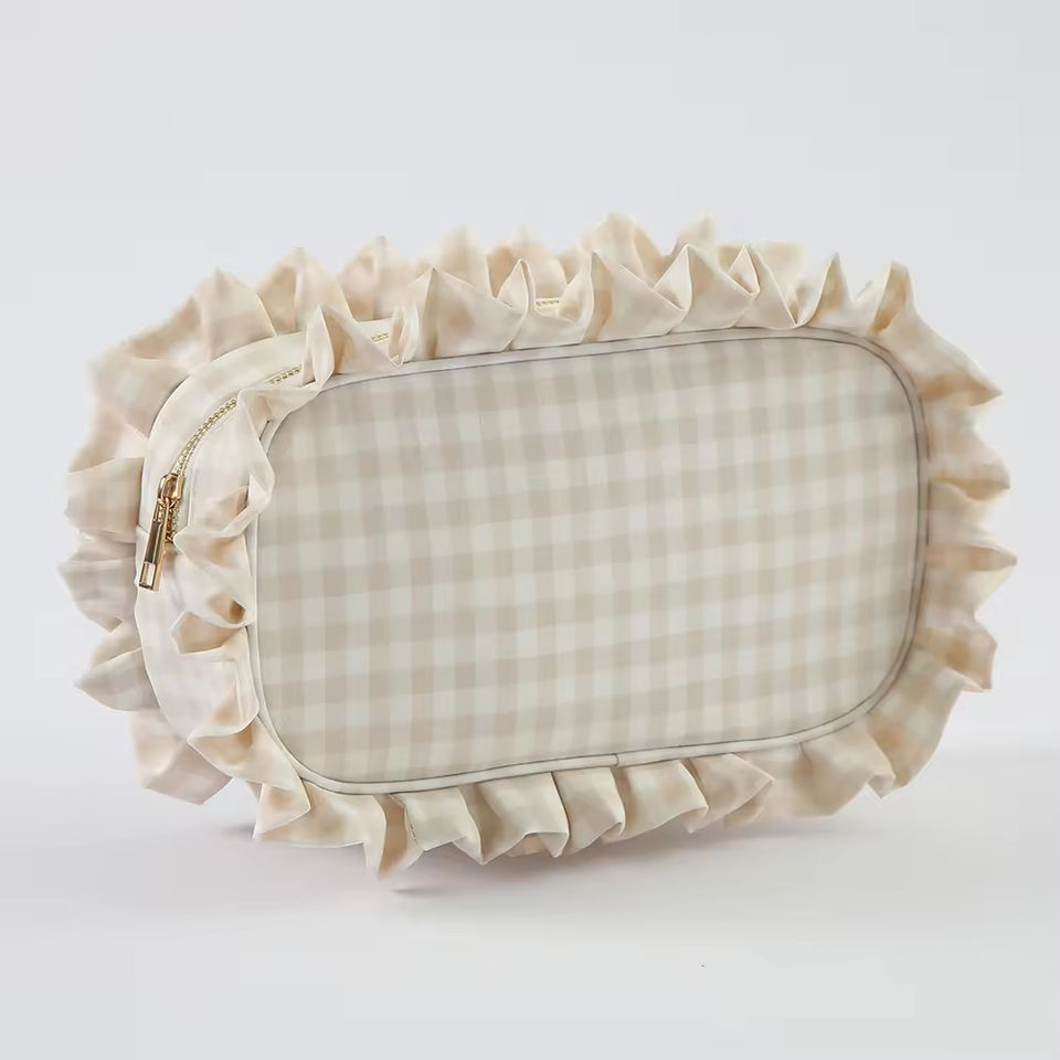 Bolsa de Cosméticos con Volantes, Diseño a Cuadros, para Novia, Bolsa de Maquillaje Grande para Viaje