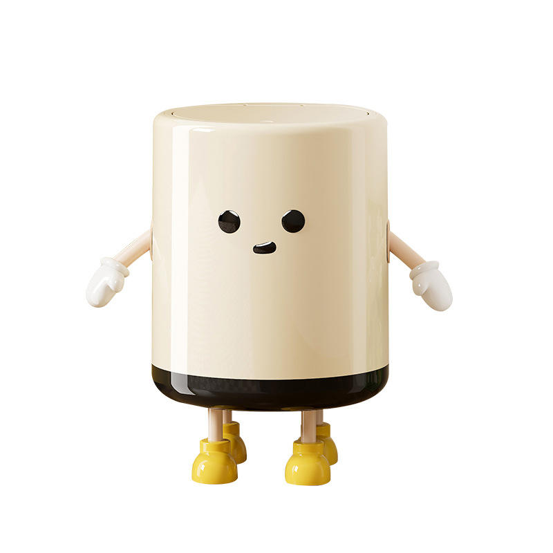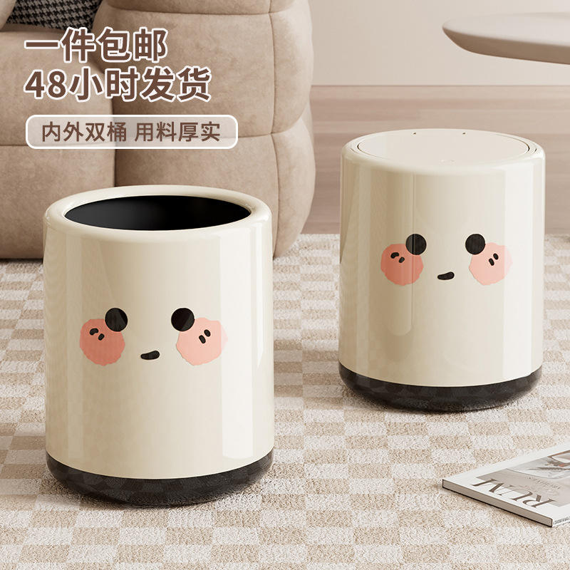 Lindo Bote de Basura Cilíndrico con Tapa de Presión para Sala de Estar, Dormitorio, Baño, Uso Interior, Contenedor de Residuos de Plástico