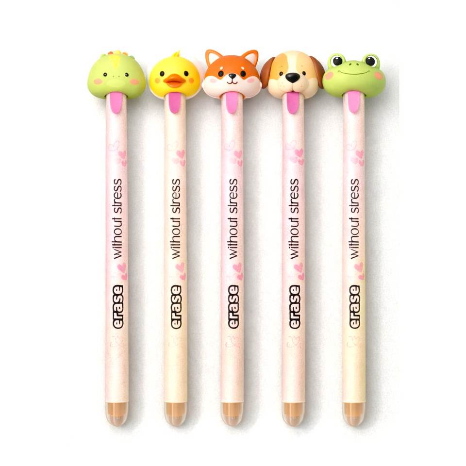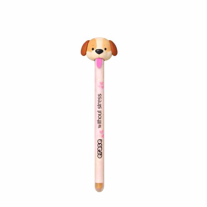 Bolígrafo de Gel Nicher con Diseño de Cabeza de Perro, Extraíble, Borrable, de Plástico, Personalizable, para Niños, Estudiantes, Fiestas, Oficina, Azul/Negro, 0.7 mm